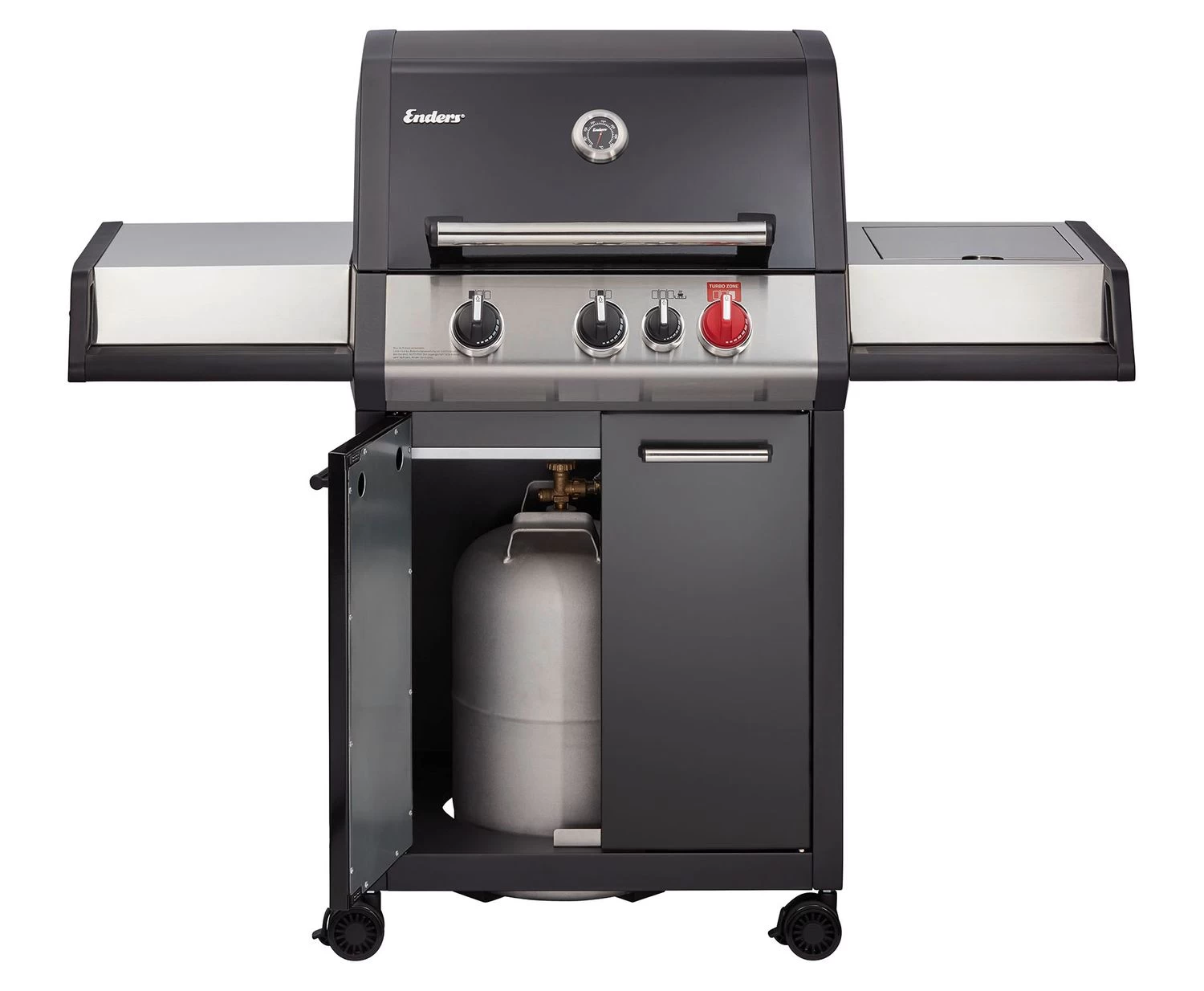 Der Enders Monroe Black Pro bietet einen geräumigen Unterschrank mit genügend Platz für eine 11 kg Gasflasche. Die doppelwandigen Türen sorgen für eine hochwertige Haptik und verhindern das unschöne Klappern beim Öffnen und Schließen der Türen.