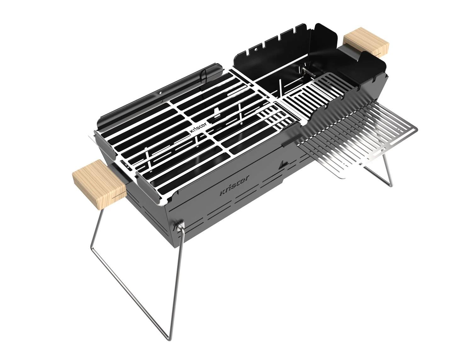 Kleines Packmaß – Große Grillfläche: der Knister Grill ist ausziehbar