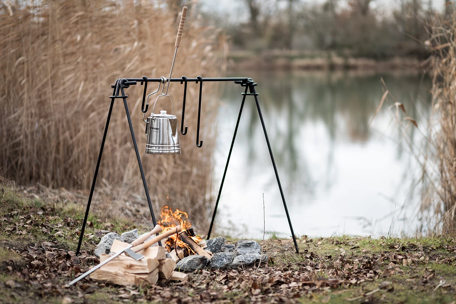 Die Petromax Ausgießhilfe ist ein praktisches Werkzeug für die Petromax Edelstahl Perkolatoren le14 und le28. Griff und Henkel des Perkolators werden einfach in das Gestänge der Petromax Feuerbrücke eingehakt. So hängt die Ausgießhilfe nebst Perkolator sicher an der Querstange der Feuerbrücke.