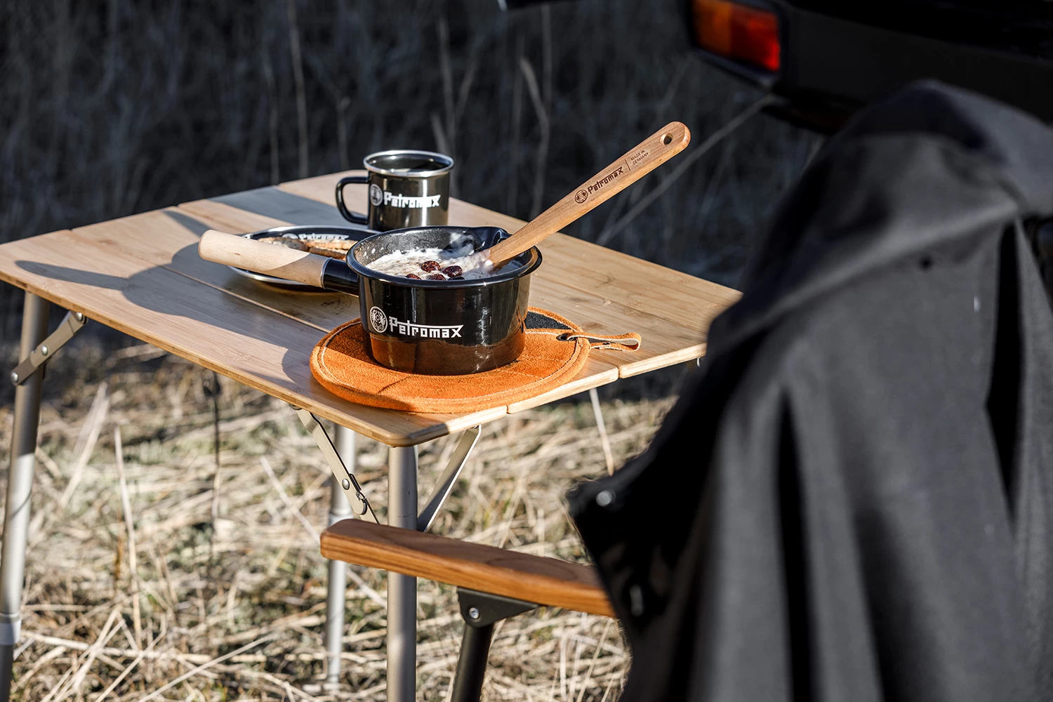 Die gebrannte, glatte Oberfläche ist unempfindlich gegen Kratzer und lässt sich besonders leicht reinigen. So gelingen auch unterwegs in der freien Natur kleine Gerichte schnell und unkompliziert.