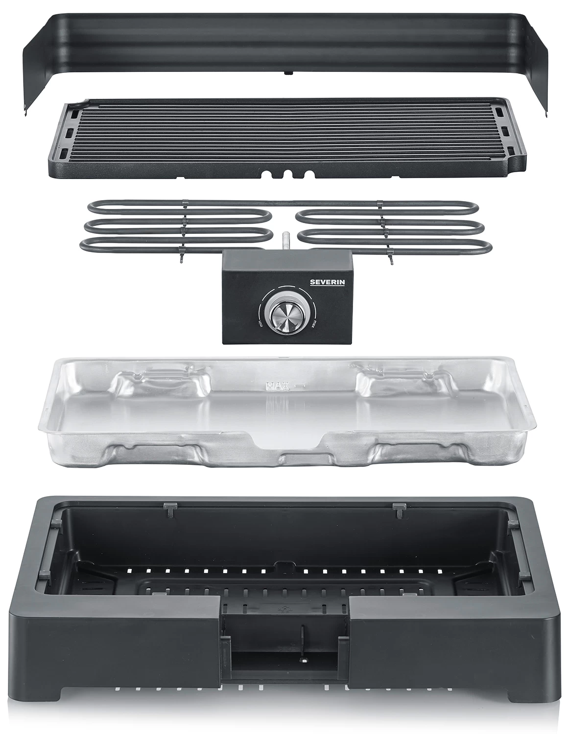 Vor dem Grillen wird die Grillschale mit Wasser befüllt. Das bietet gleich mehrere Vorteile: Heruntertropfendes Fett wird hier aufgefangen, damit Fettbrand verhindert und zusätzlich die Rauch- und Geruchsentwicklung deutlich reduziert. Dadurch kann der Severin Elektro Tischgrill sogar in Innenräumen genutzt werden.